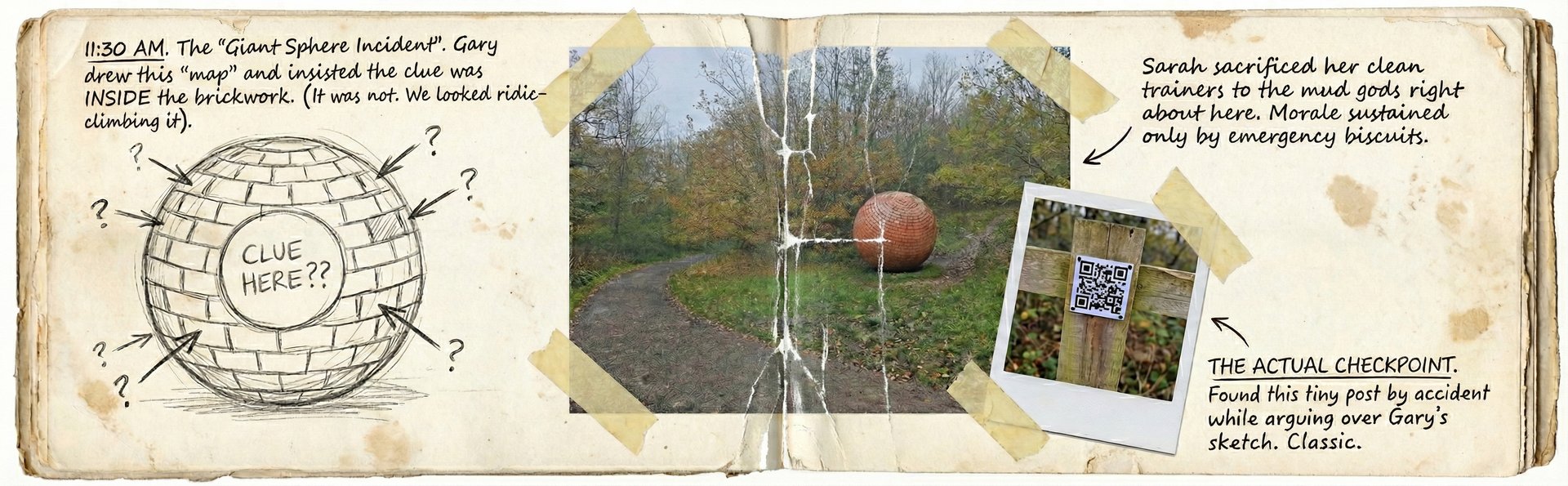 Officially, we operate under the name QRidian. Unofficially, we are The Institute of Advanced Wandering, running the only digital mystery event in Chesterfield that requires sturdy boots.